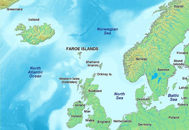 Located half way between Scotland and Iceland in the Northeast Atlantic, the Faroe Islands are an archipelago of 18 mountainous islands, with a total land area of 1,399 square kilometres, a sea area of 274,000 square kilometres and a population of 50,000.