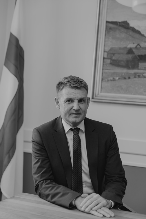 Bárður á Steig Nielsen is born in Vestmanna and first elected to Parliament in 2002. He was Minister of Finance from 2007 - 2007. He is still a member of the Løgting and the leader of the Union Party since 2015.